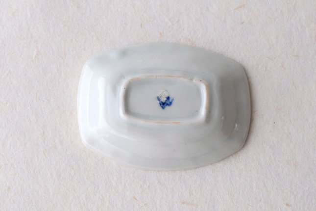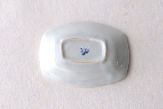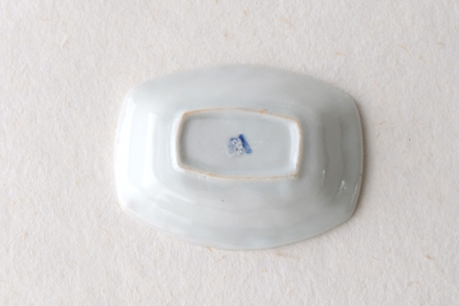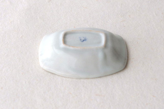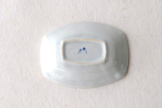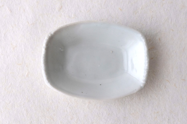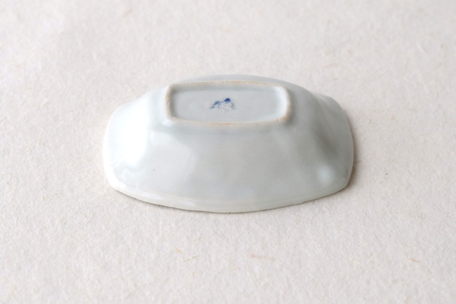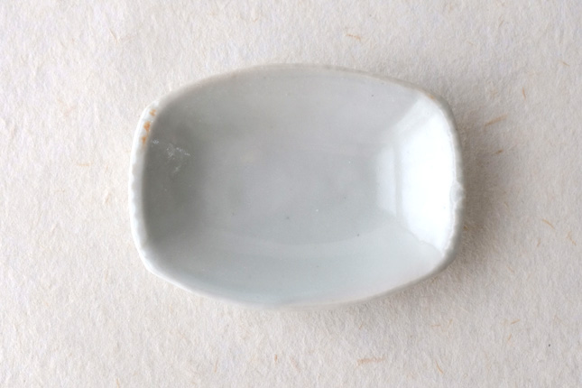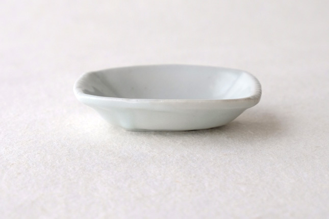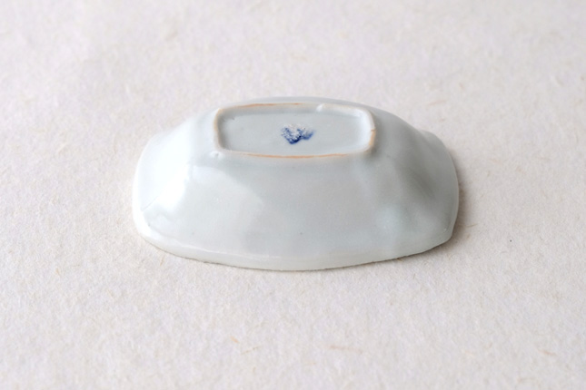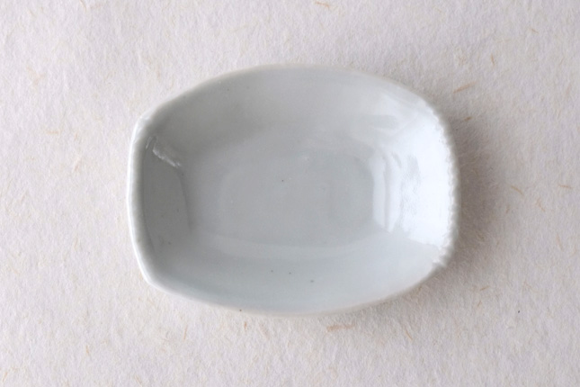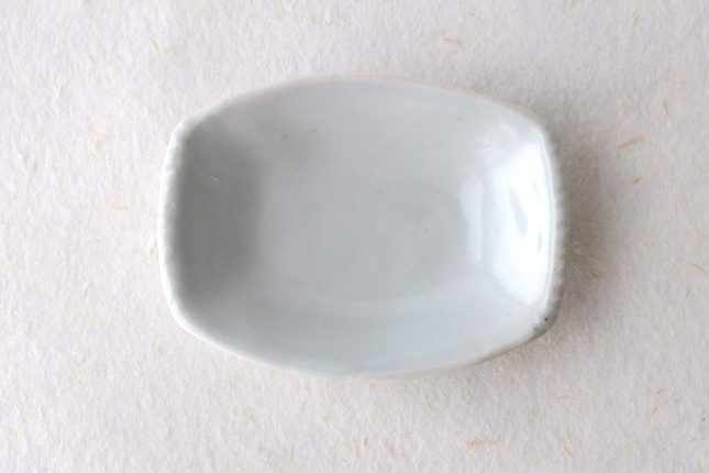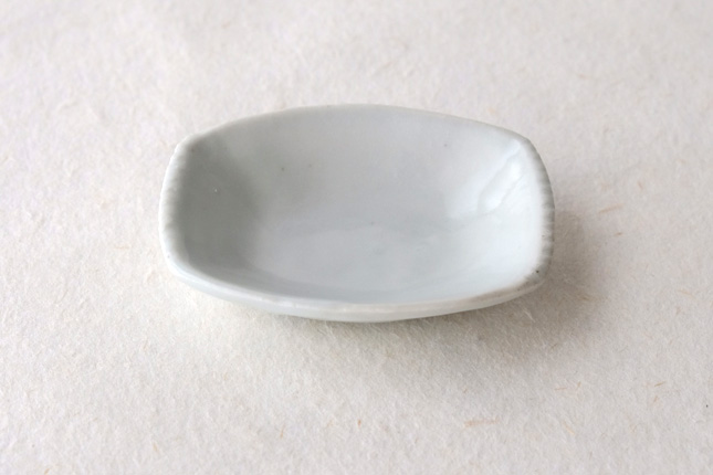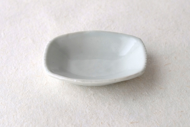 軽やかな印象の手塩皿。両端がギザギザになっているのは、お二人の最近の流行りなのだとか。もともとはレンゲを置くために作られた形なのだそうです。醤油や薬味など日々気軽にお使いいただきやすいかと思います。