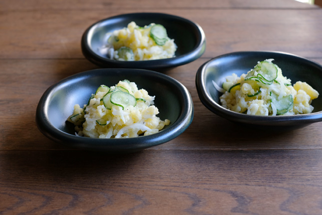 深いグリーンにポテトの白い色がよく映えます。