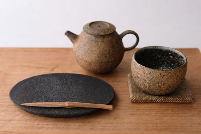 写真では、畑中さんの「丸小碗 黒茶中」をあわせてみました。