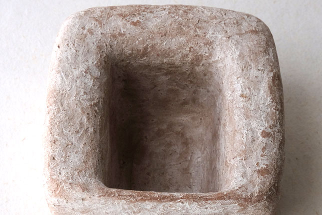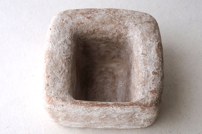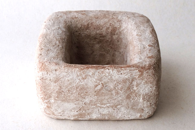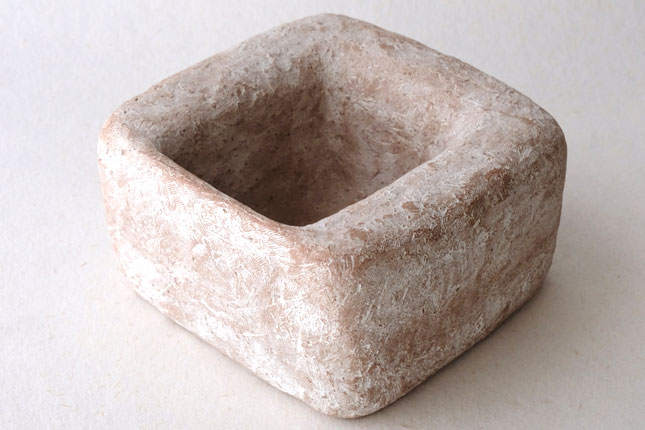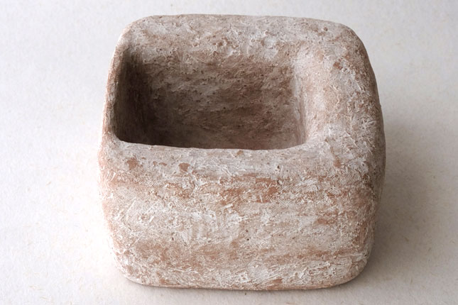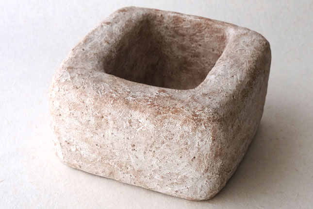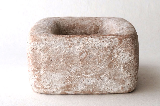 水を張ると水の表面がぷっくりして、そのまま何も生けなくても。意外に深さがあるので、低めの植物でしたら斜めに挿すことができます。いろいろ工夫して楽しんでみてください。表面がカサッとしているので花留まりがいいです。