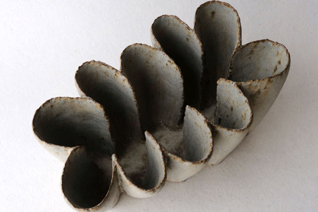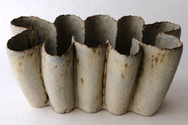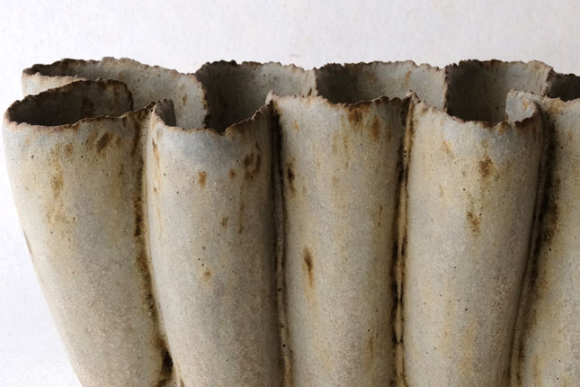 金属がサビたような風合い、上から見ると雲のようなおもしろい形の花器です。置いておくだけでも。迫力のあるサイズ感で、枝ものも楽しんでいただけます。