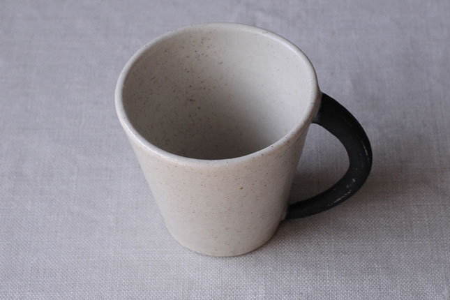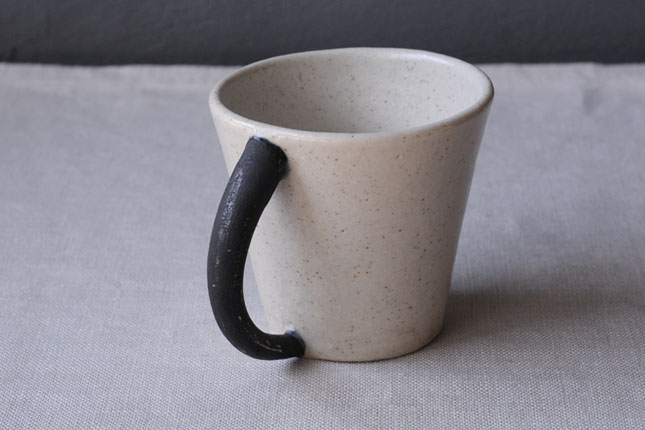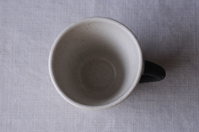 灰釉のマグカップと比べて滑らかな質感、すこし小ぶりです。