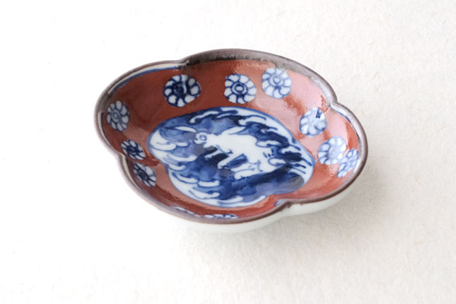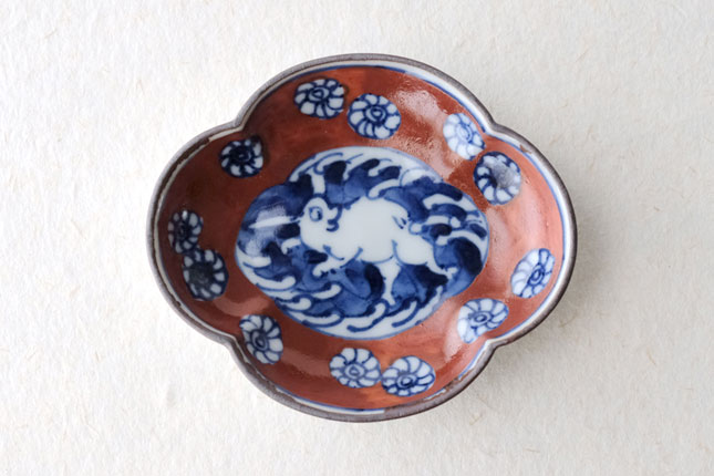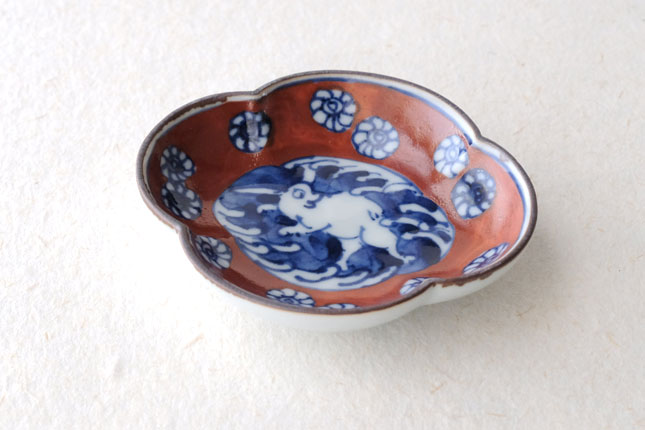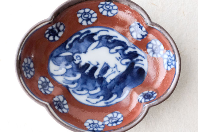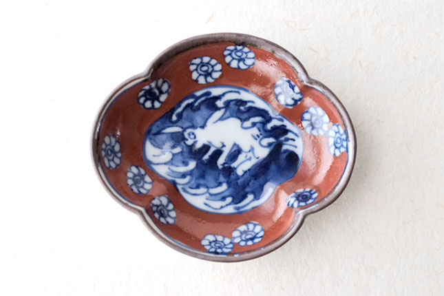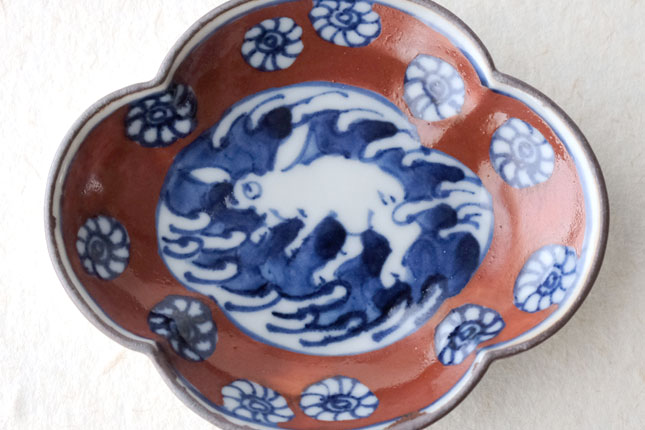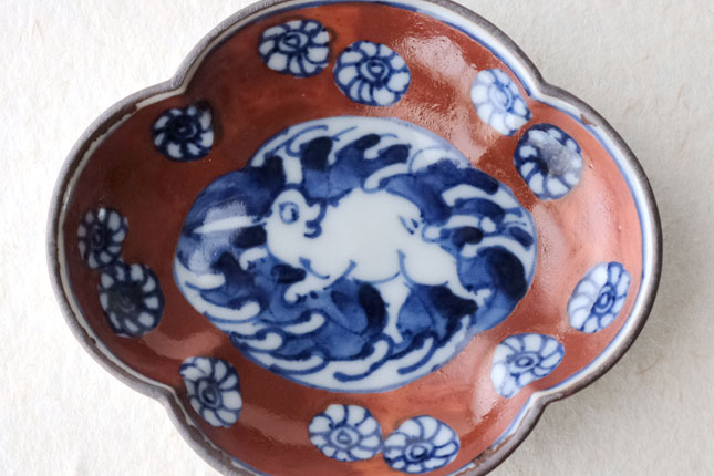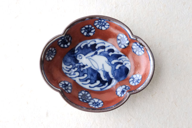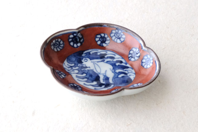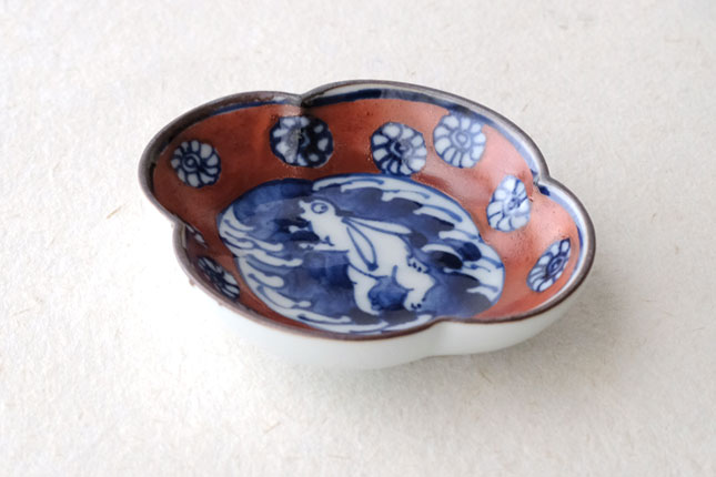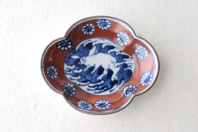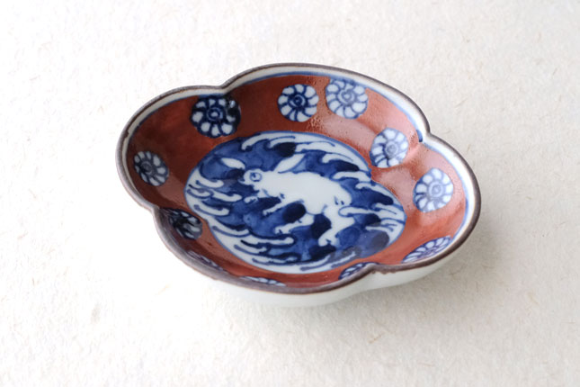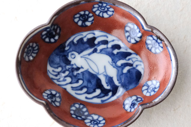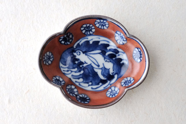 15木売豆皿 赤波ウサギ-4 / 萌窯