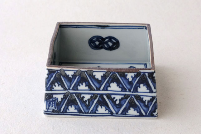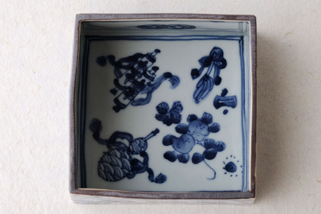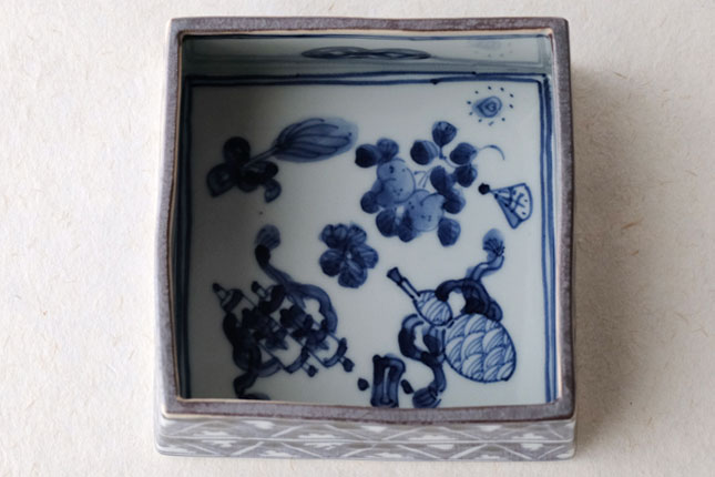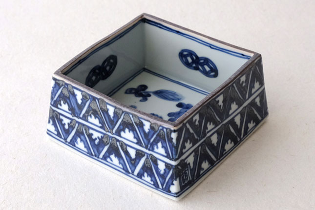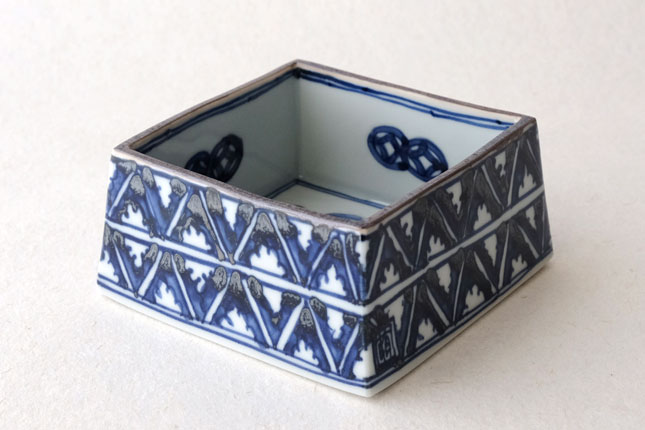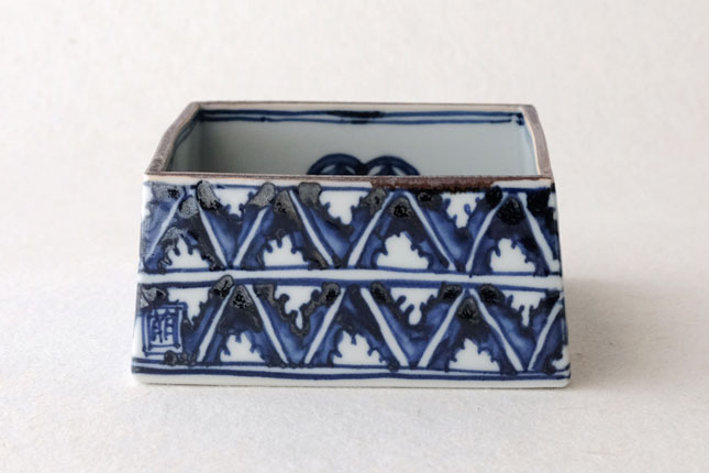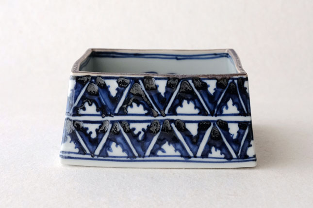 09四方鉢 染村 小-2 / 萌窯