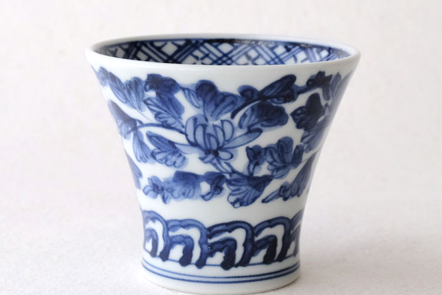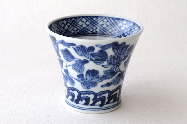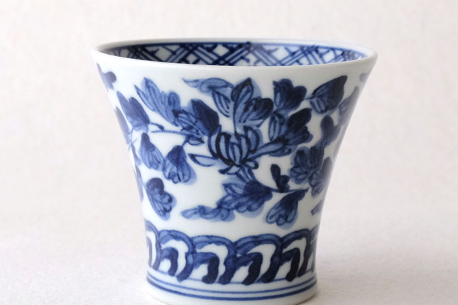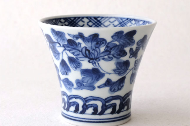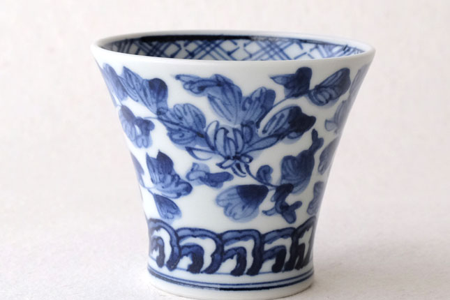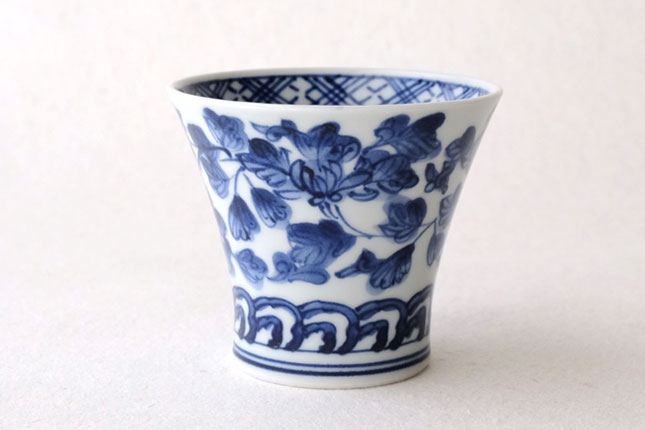 01端反り湯飲 染付唐草-4 / 萌窯