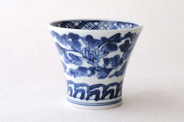 01端反り湯飲 染付唐草-1 / 萌窯