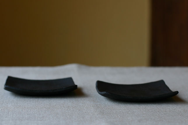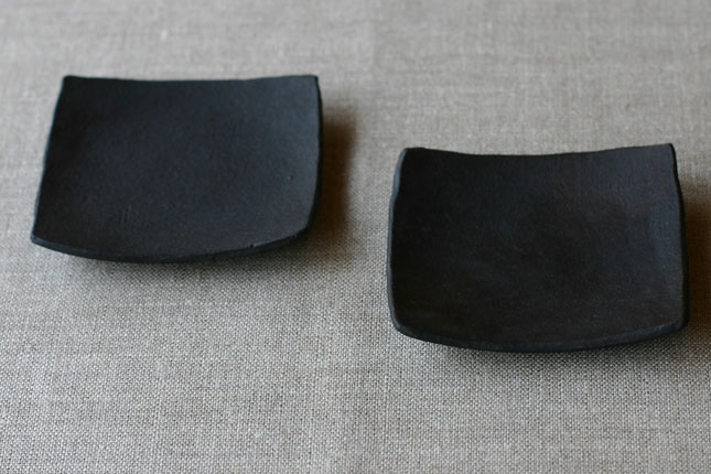 角が少し持ち上がった小さな角皿。小さくてもちゃんと品があります。お茶うけなどに。