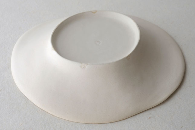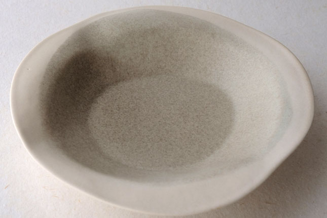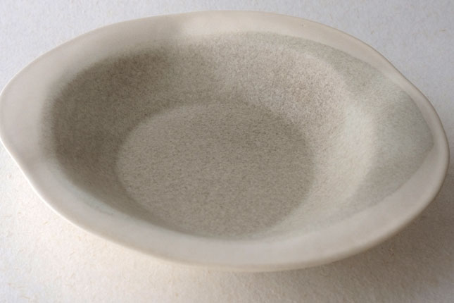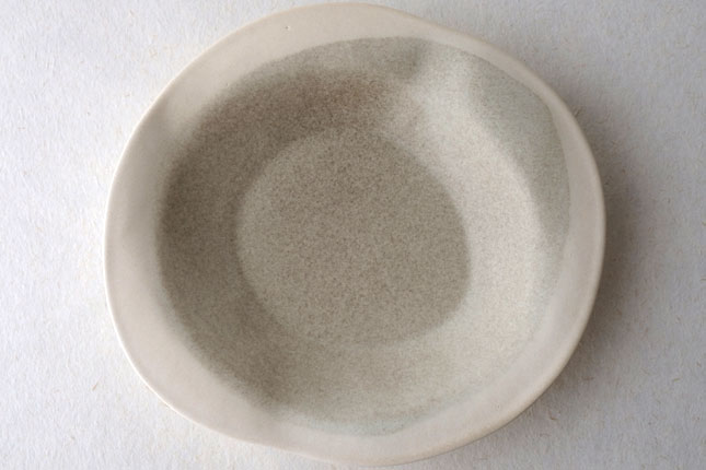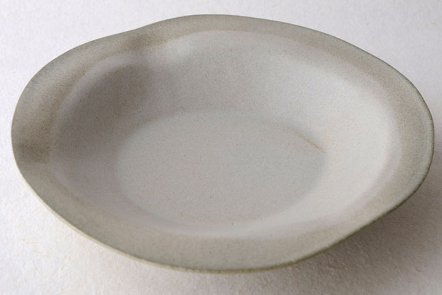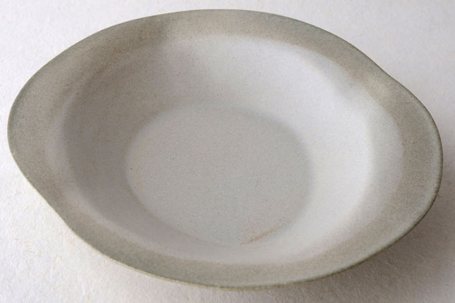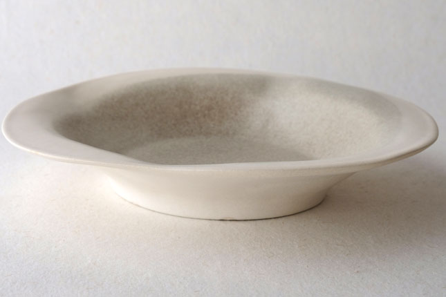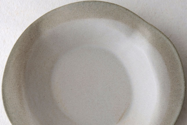 この「花リム皿」は一番新しい形のお皿とのこと。辰巳さん曰く、もりもりに盛っても、ちょこんと真ん中においても可愛い、色々な使い方ができるお皿なのだそうです。もこもこっとした形がおもしろく、置く角度を変えると印象が少しずつ変わるので、その日の気分で楽しんでいただいてもよいかと思います。もりもりに盛る場合は、パスタやサラダ、煮物などを。ちょこんと真ん中にはそのときどきに自由な発想で!