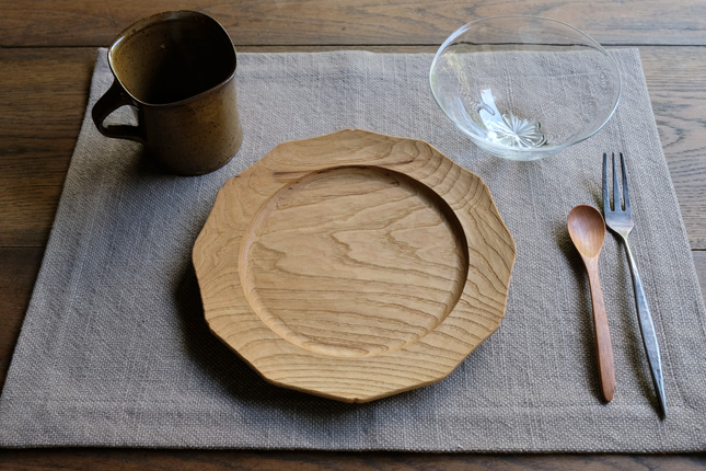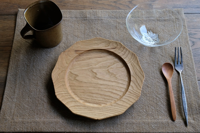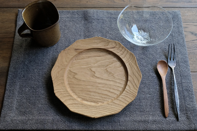 例えば朝食ですと、直径21cm程度のお皿と、小鉢、マグカップ、カトラリーがのるサイズです。