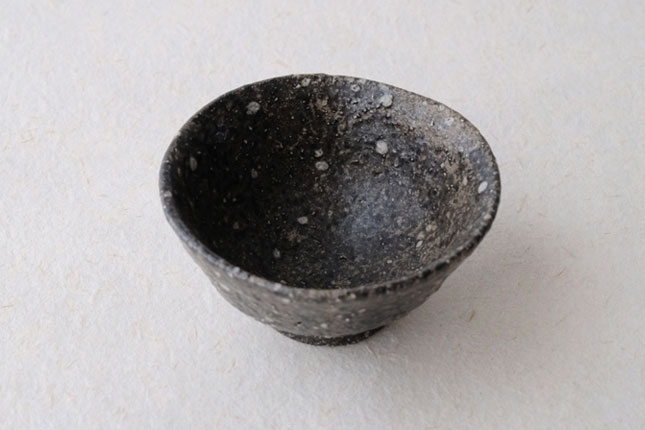 いろんな形に自由に作られたようなぐい呑みです。白い小石など眺めながらお酒をいただくときっと楽しいかと。豆鉢としてお選びくださる方も。