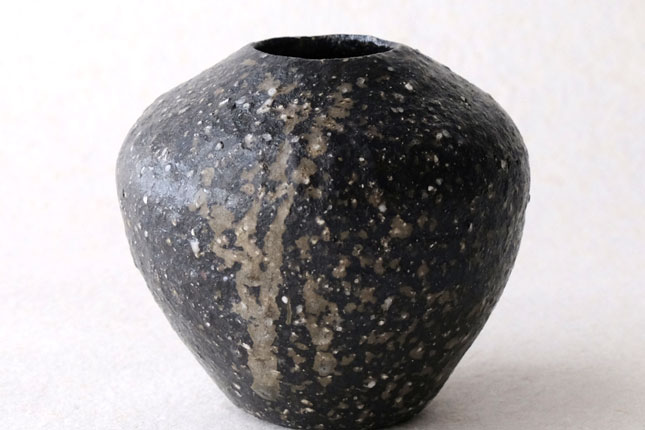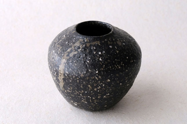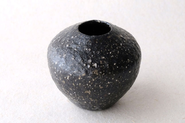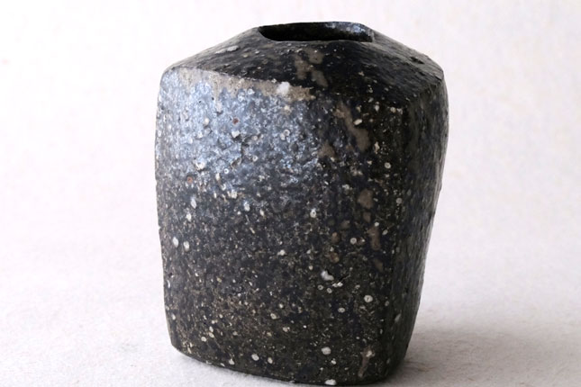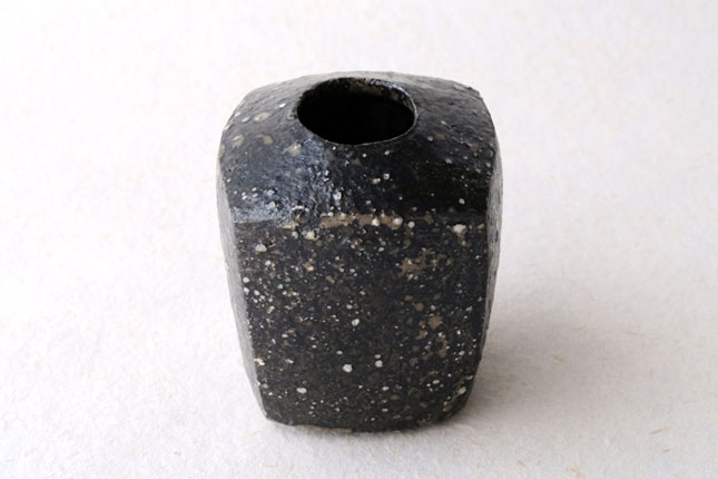 丸三角四角と様々な形で作られています。黒一色ではなく、小石や釉薬の色など表情豊か。和花も洋花もどちらも合いそうです。小さめサイズです。