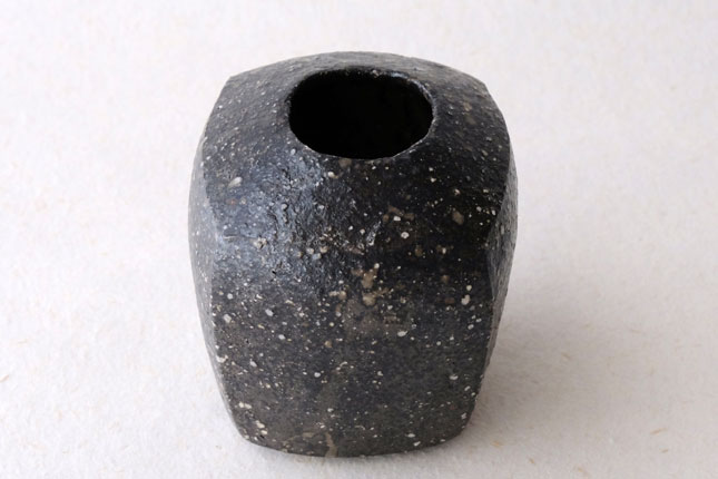 丸三角四角と様々な形で作られています。黒一色ではなく、小石や釉薬の色など表情豊か。和花も洋花もどちらも合いそうです。